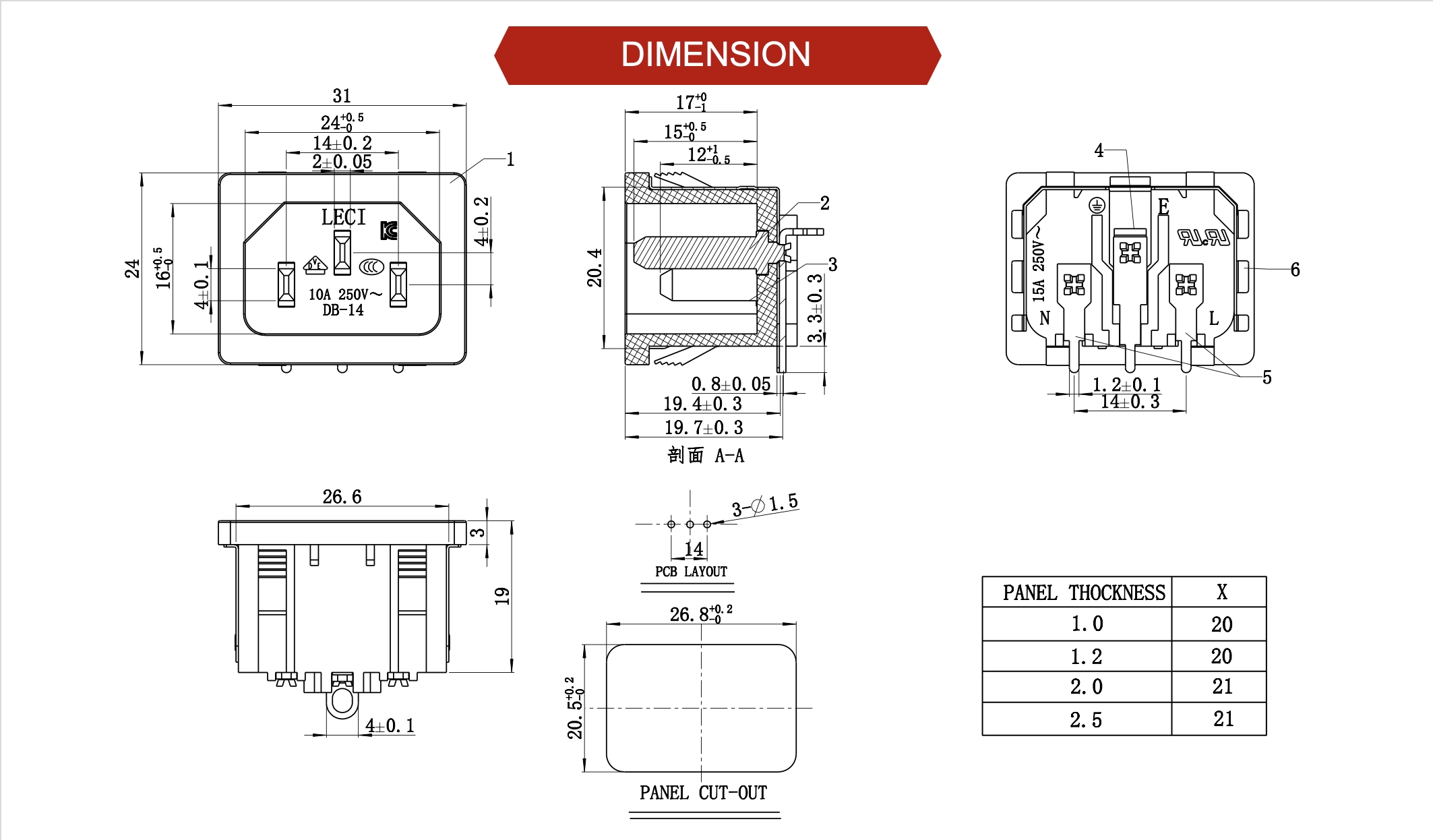 Terminals to Plastic: 3750VAC (50-60Hz) 1 min