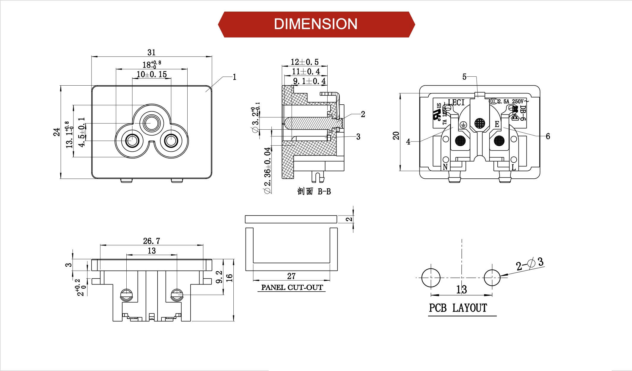 Rating: 7A125V / 2.5A250V