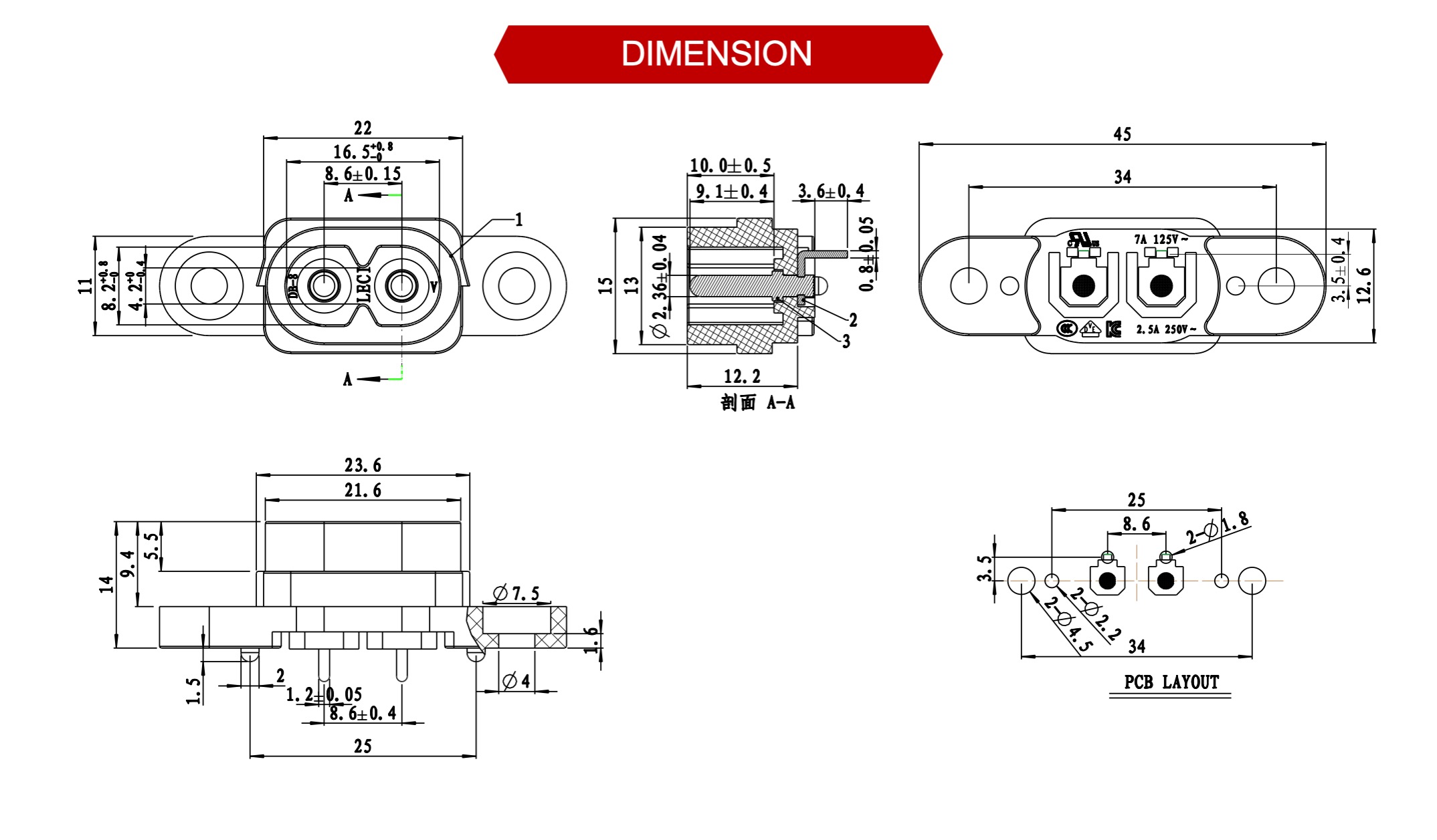 Rating: 7A125V / 2.5A250V