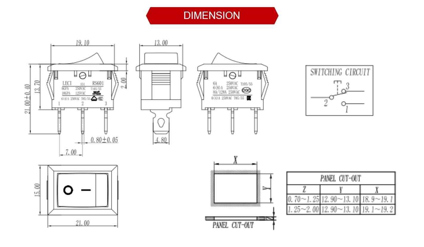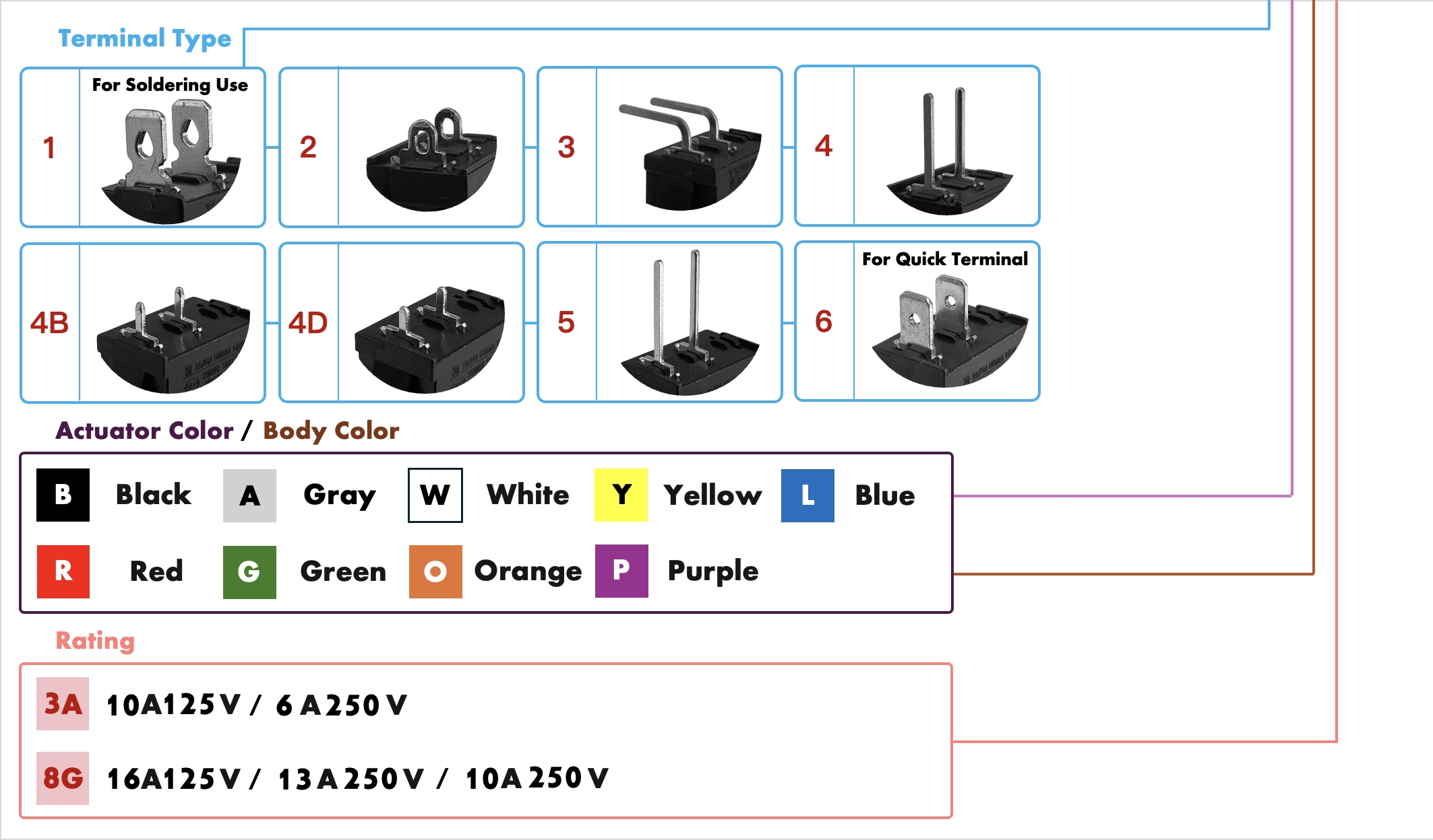 Standard Version Ratings: 10A 125V 6(8)A 250V 6(4)A 250V