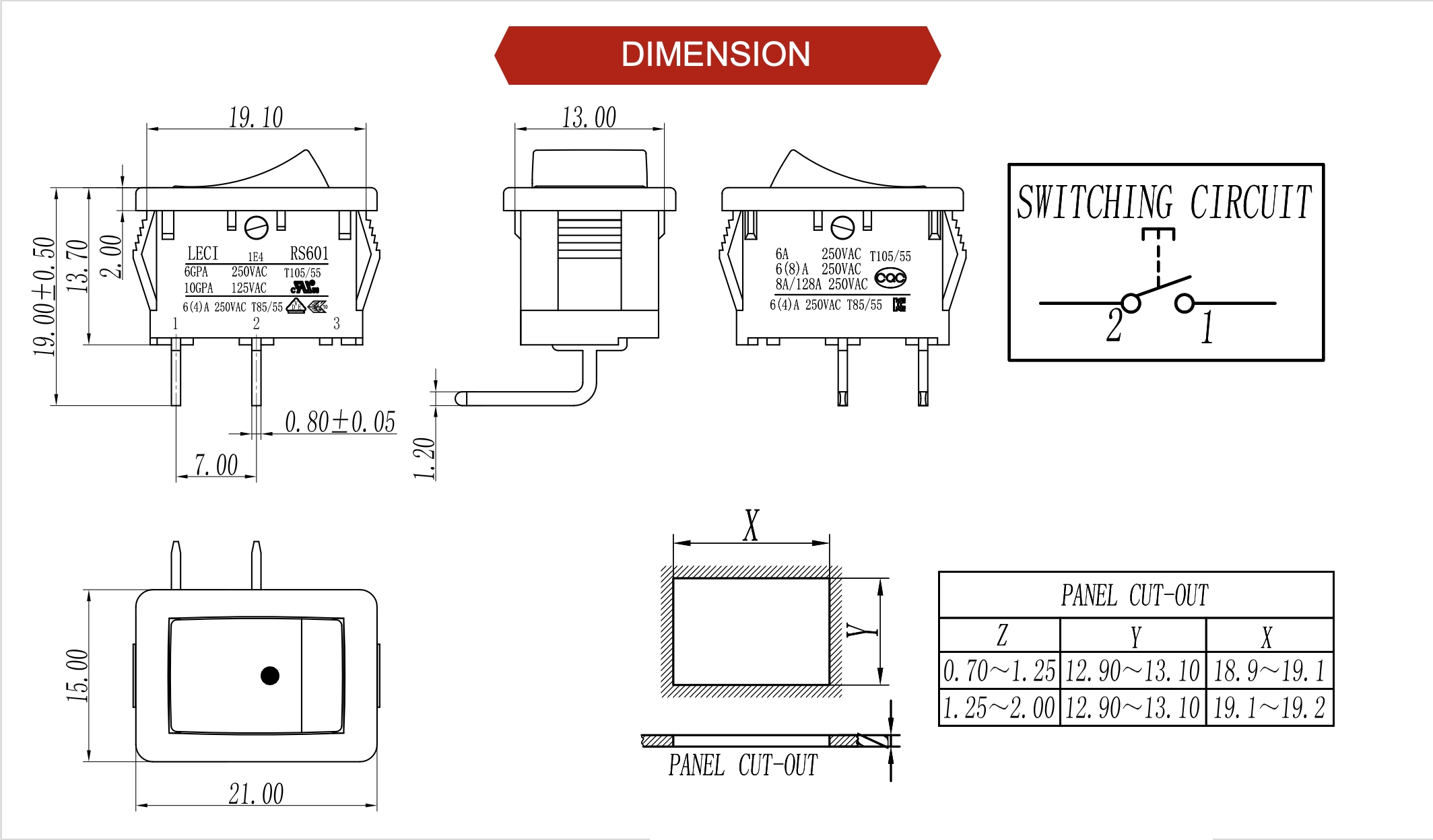 Standard Version Ratings: 10A 125V 6(8)A 250V 6(4)A 250V
