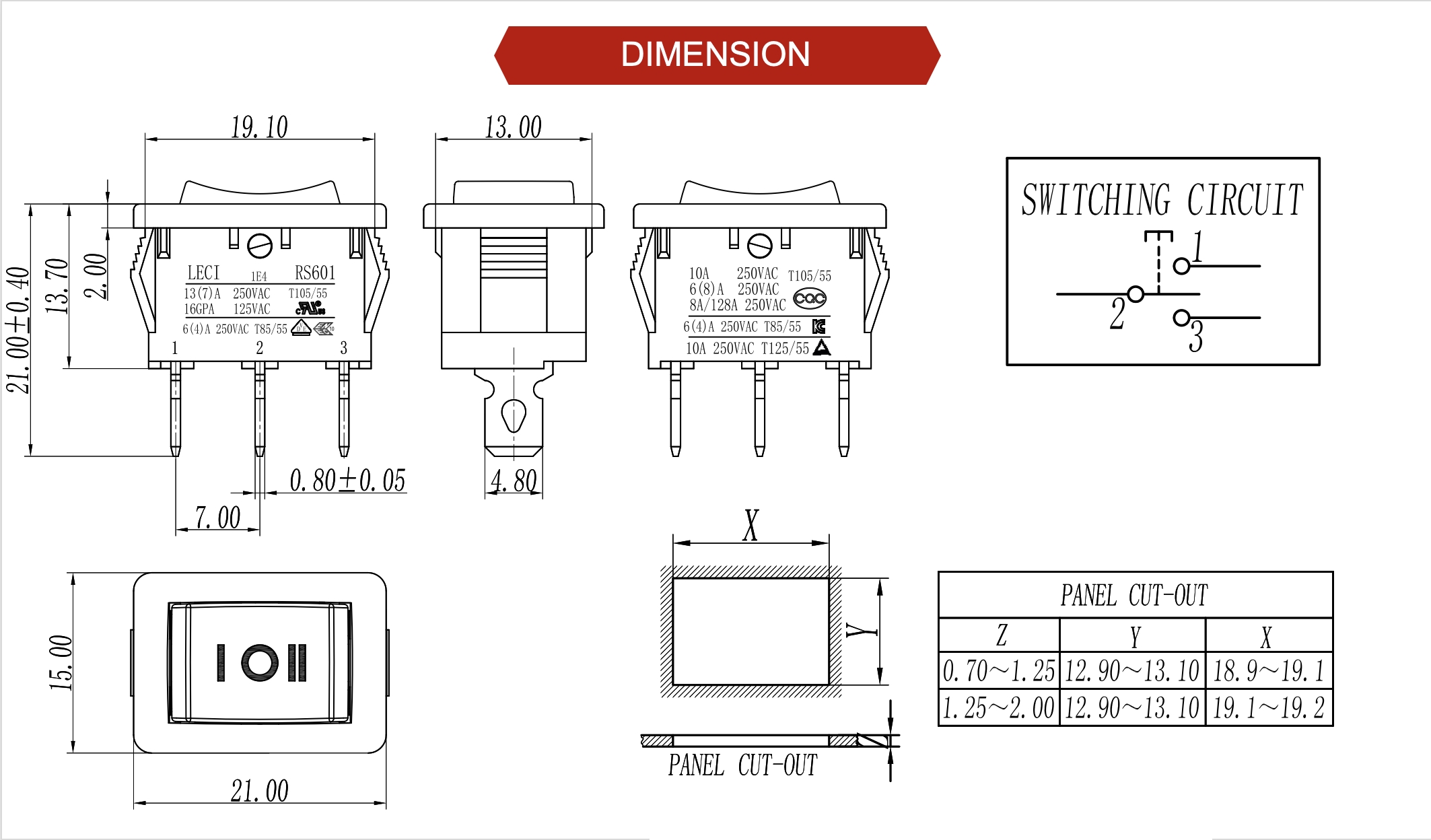 Standard Version Ratings: 10A 125V 6(8)A 250V 6(4)A 250V