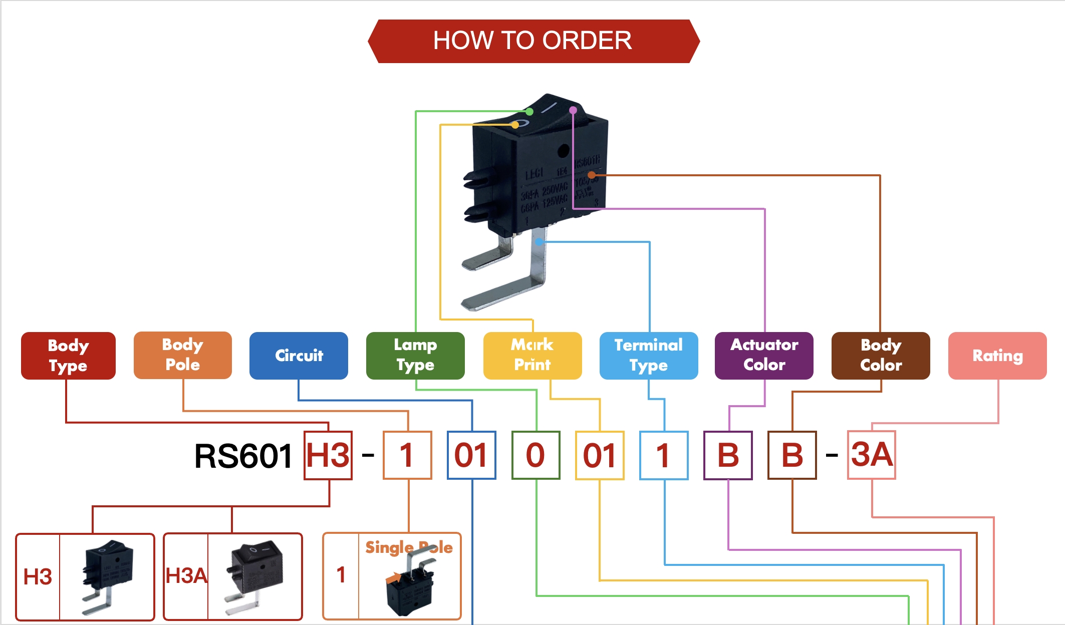 Standard Version Ratings: 6A125V 3A250V 3A/40A 250V