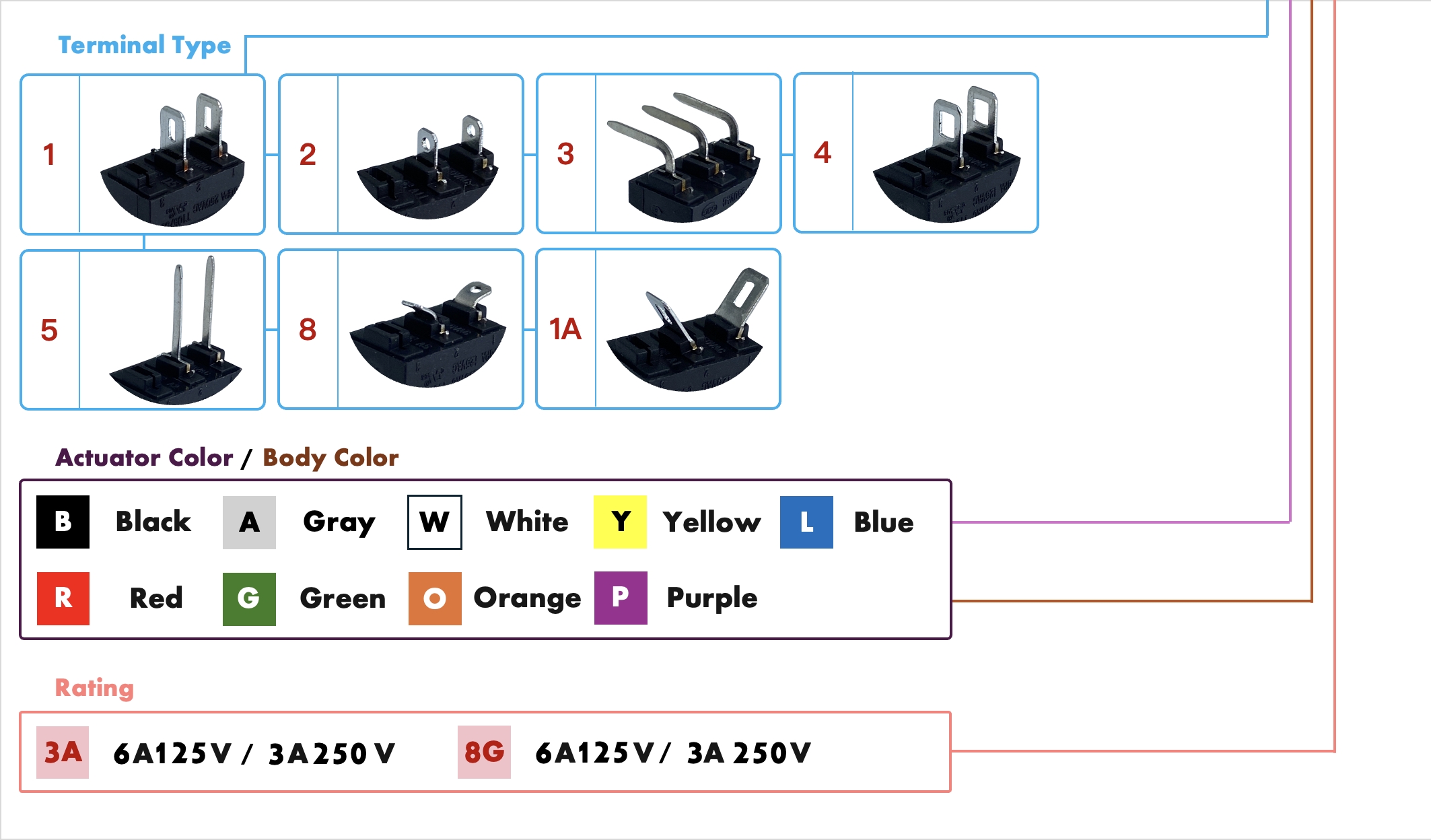 Standard Version Ratings: 6A125V 3A250V 3A/40A 250V