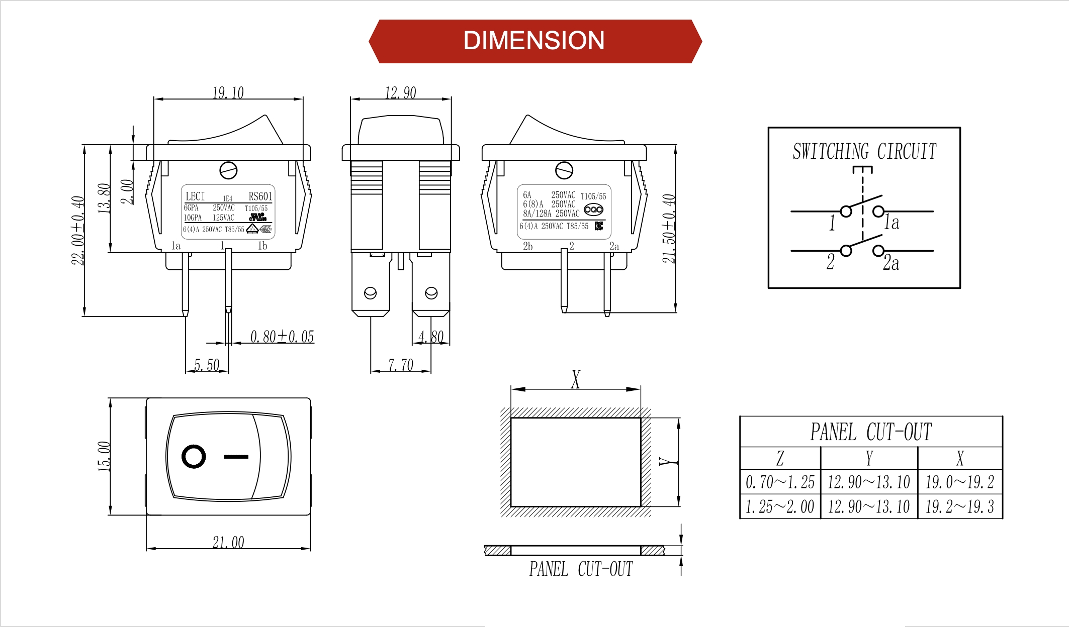 Standard Version Ratings: 10A 125V 6(8)A 250V 6(4)A 250V